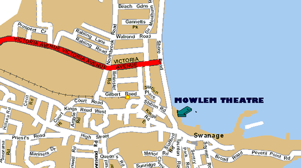 The Mowlem Theatre is situated on the sea front at Swanage at the point where the promenade joins the shopping area. It is about 250 yards along Station Road from the bus terminus and the Steam Railway Station which operates a park and ride from Norden, some 7 miles away.